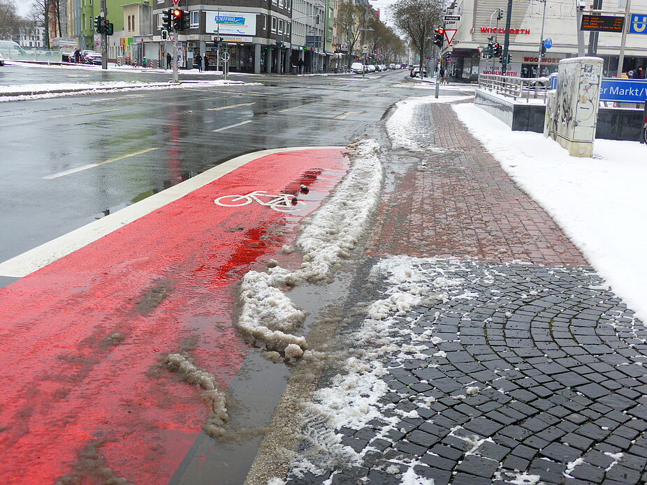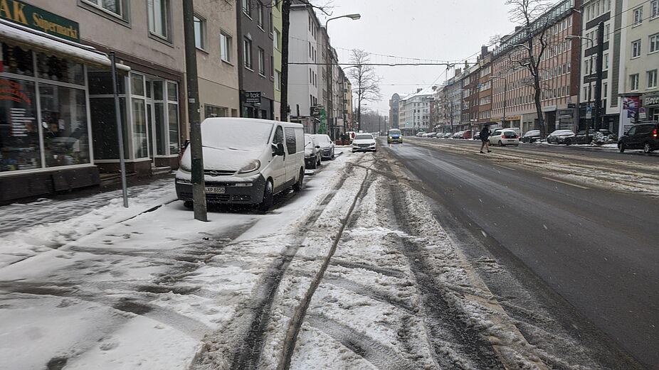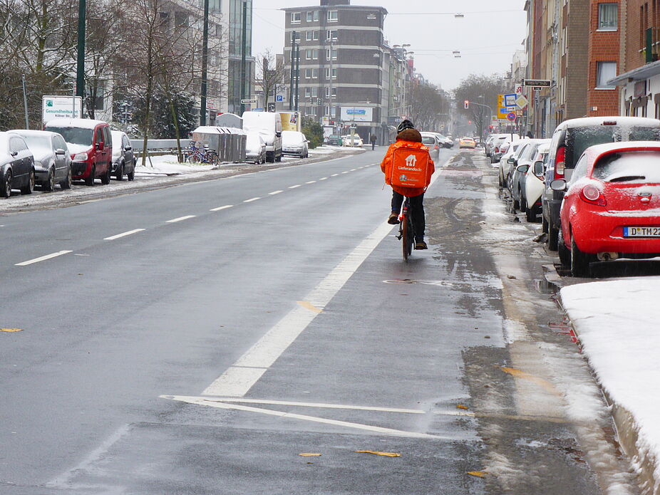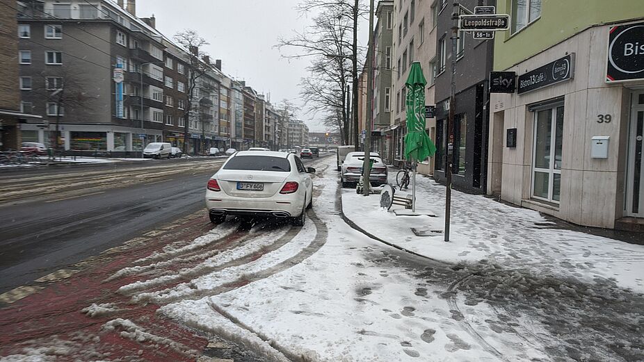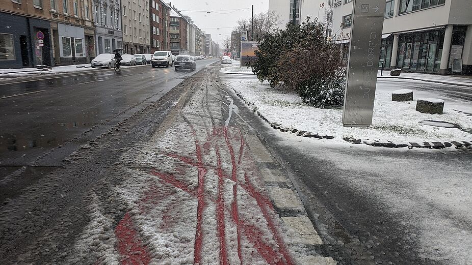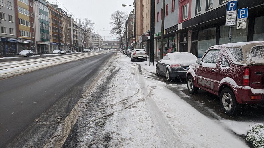 Kölner Straße, Düsseldorf, nichtgeräumter Radweg