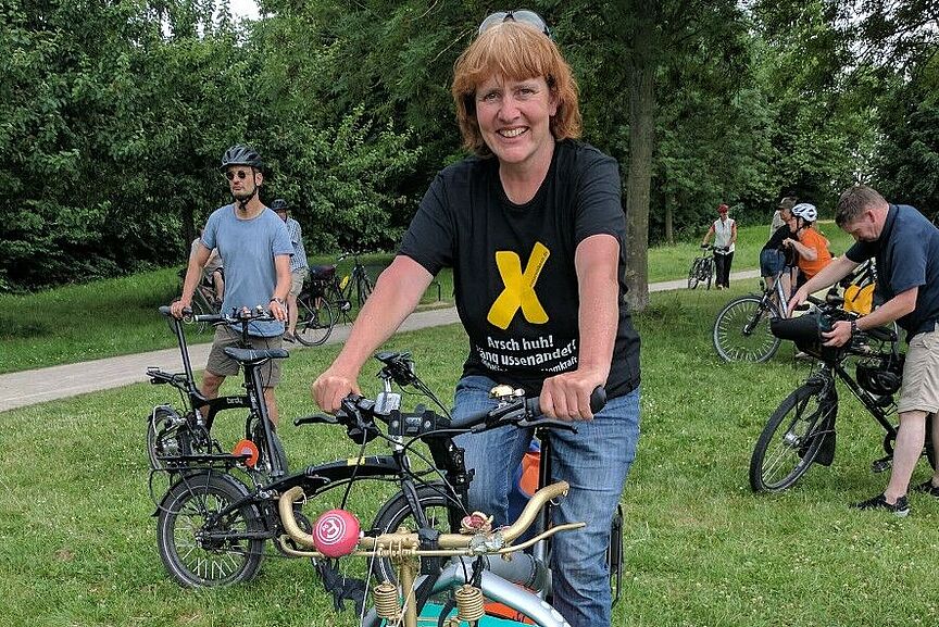 Anja ist seit vielen Jahren Mitglied im ADFC und fährt immer sehr gerne bei den geführten Touren mit. Für sie ist es immer wieder toll, mit anderen RadfahrerInnen neue Strecken kennenzulernen und gemeinsam mit dem Rad zu fahren.