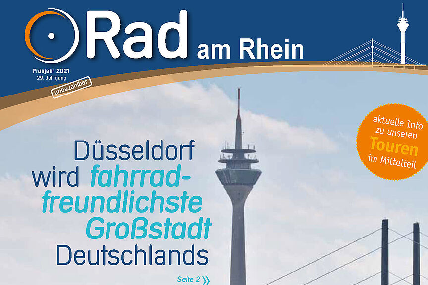 Seit Anfang März ist die die Frühjahrsausgabe unserer Mitgliederzeitschrift "Rad am Rhein" auf dem Markt. Wir informieren u.a. über die Aussage des Oberbürgermeisters Keller, dass Düsseldorf in 2025 die fahrradfreundlichste Großstadt sein wird.
