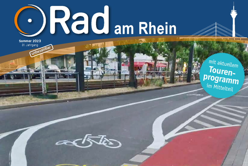 Die neueste Ausgabe der Mitgliederzeitschrift "Rad am Rhein" des ADFC ist seit dem 13. Juli 2023 online. Wir berichten über die Sternfahrt, den Fahrrad-Klimatest, Düsseldorfer Verkehrspolitik und viele andere interessante Themen.